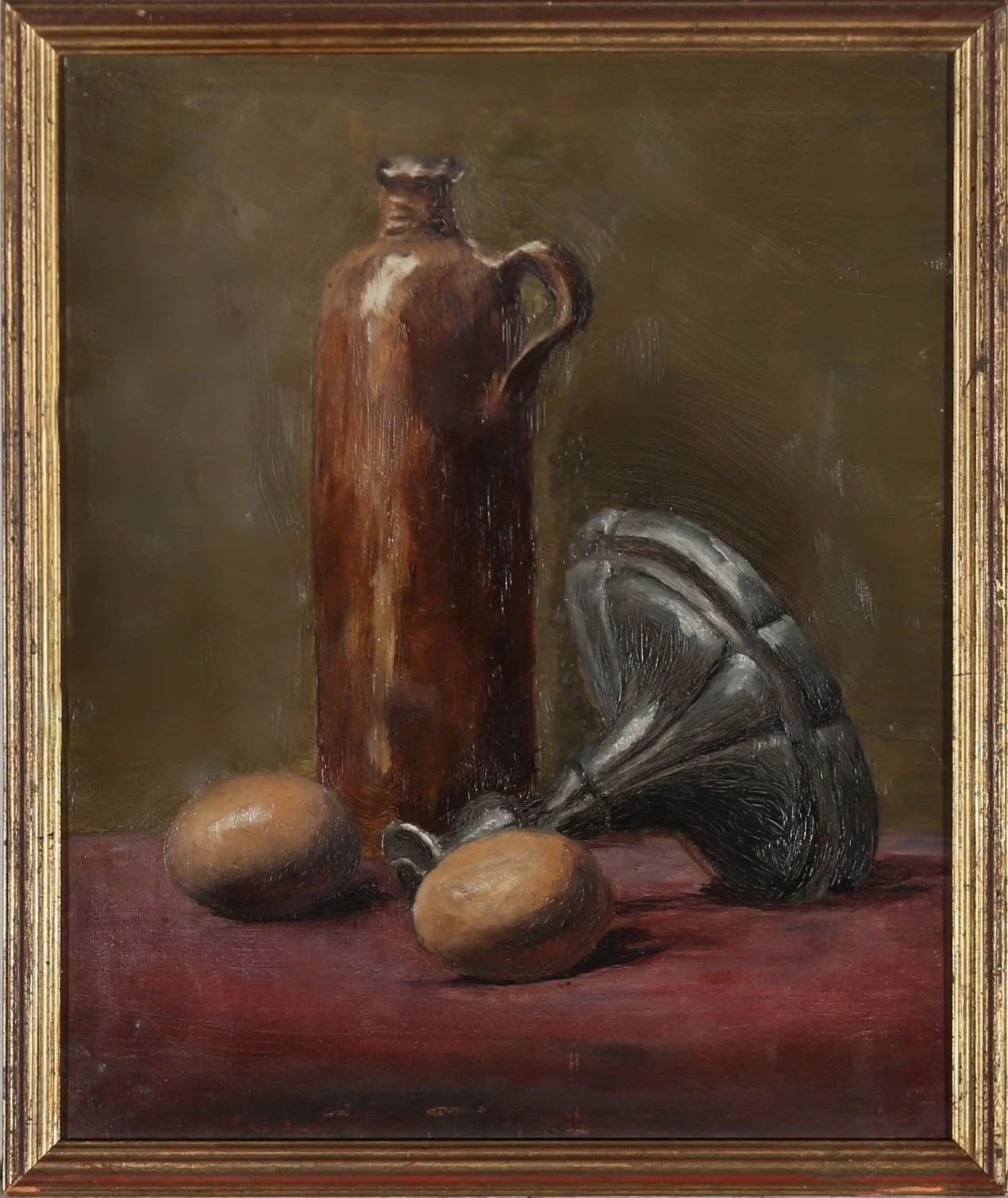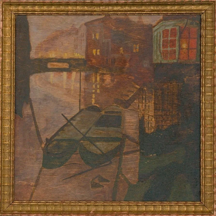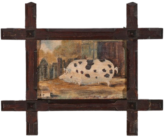 Despite the darkening that comes with age, this 19th Century landscape has splashes of colour shining through that pick out the silhouettes of the dramatic tree line, echoing the foliate detailing on the fabulous original gilt frame. Although it’s moody, this one would certainly softly glow in a dimly lit corner.