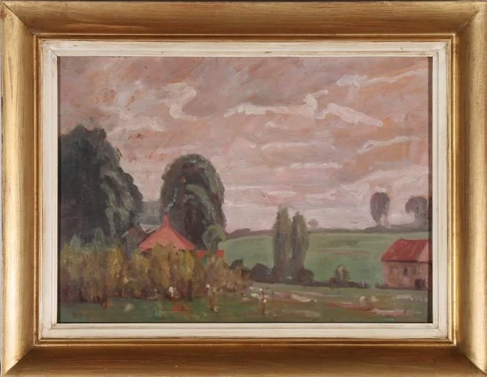 John Brown (1887-1966) - Mid 20th Century Oil, Sunset Over the Farmstead