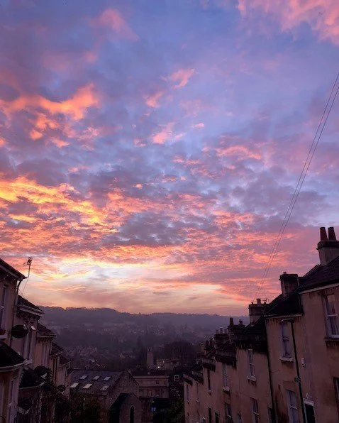 We couldn’t resist putting in a sunset picture of our own. Here’s the glorious pink sky over our home city of Bath!