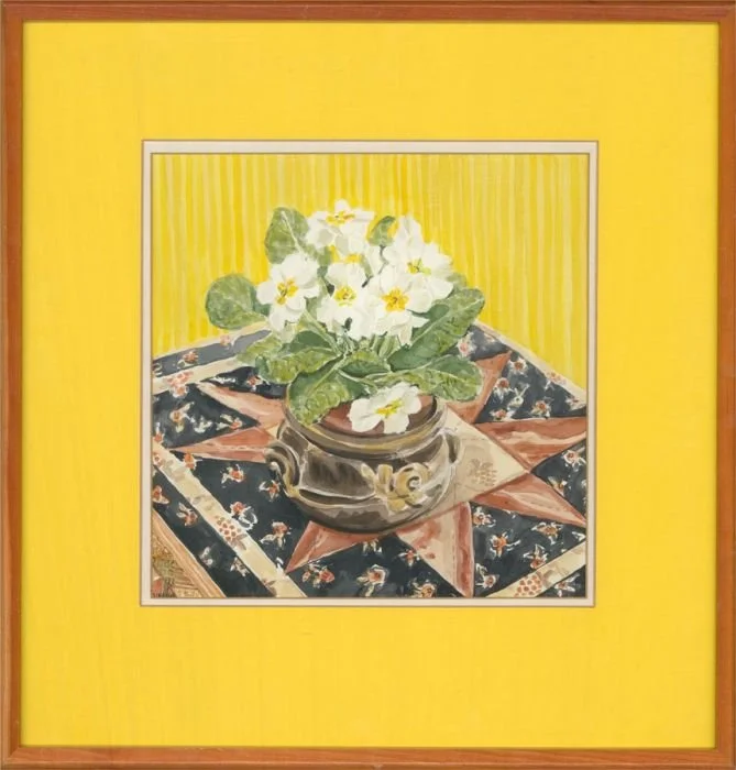 John Hopwood (1942-2015) - 1979 Pastel Summer Flowers On Blue Check