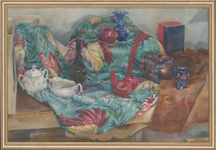 Stewart Lowdon (b. 1932) - 20th Century Watercolour Apples and China
