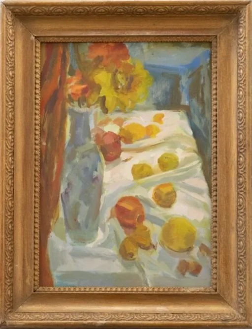 W. H. A. - Bloomsbury School Early 20th Century Oil Fruit and Textiles